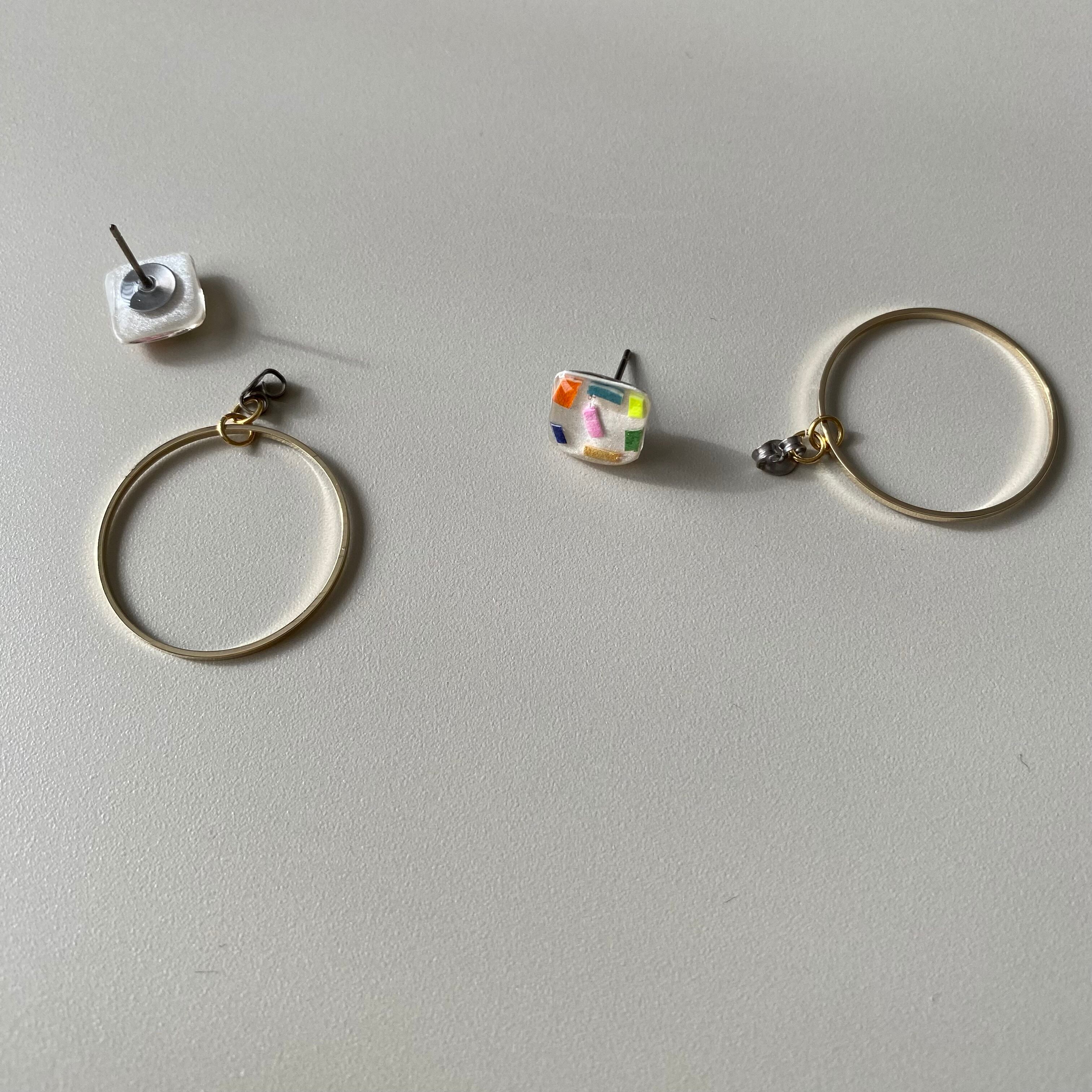 イヤリングは、引っ掛けているフープを外して頂くとカケラ単品でもお楽しみ頂けます。