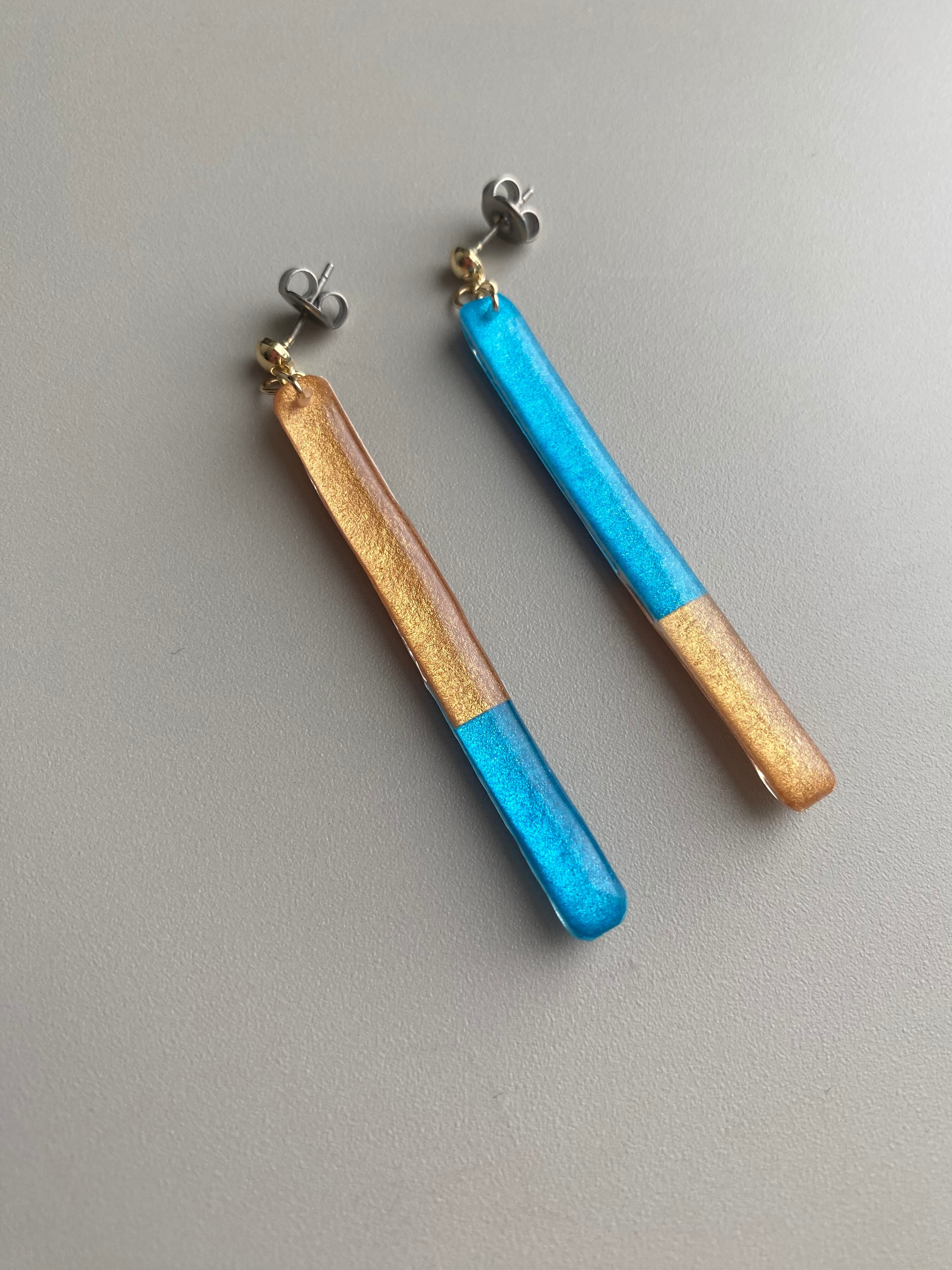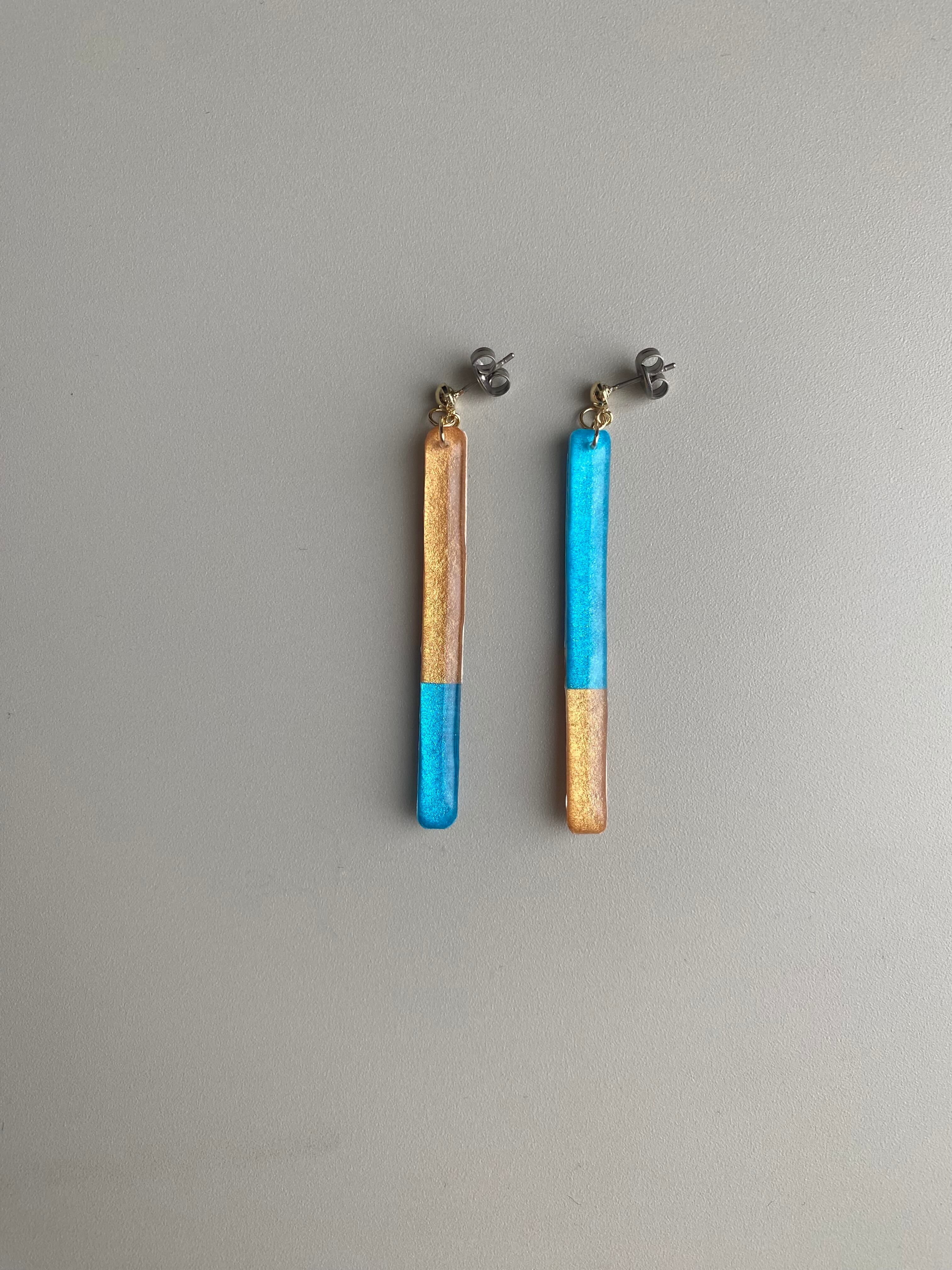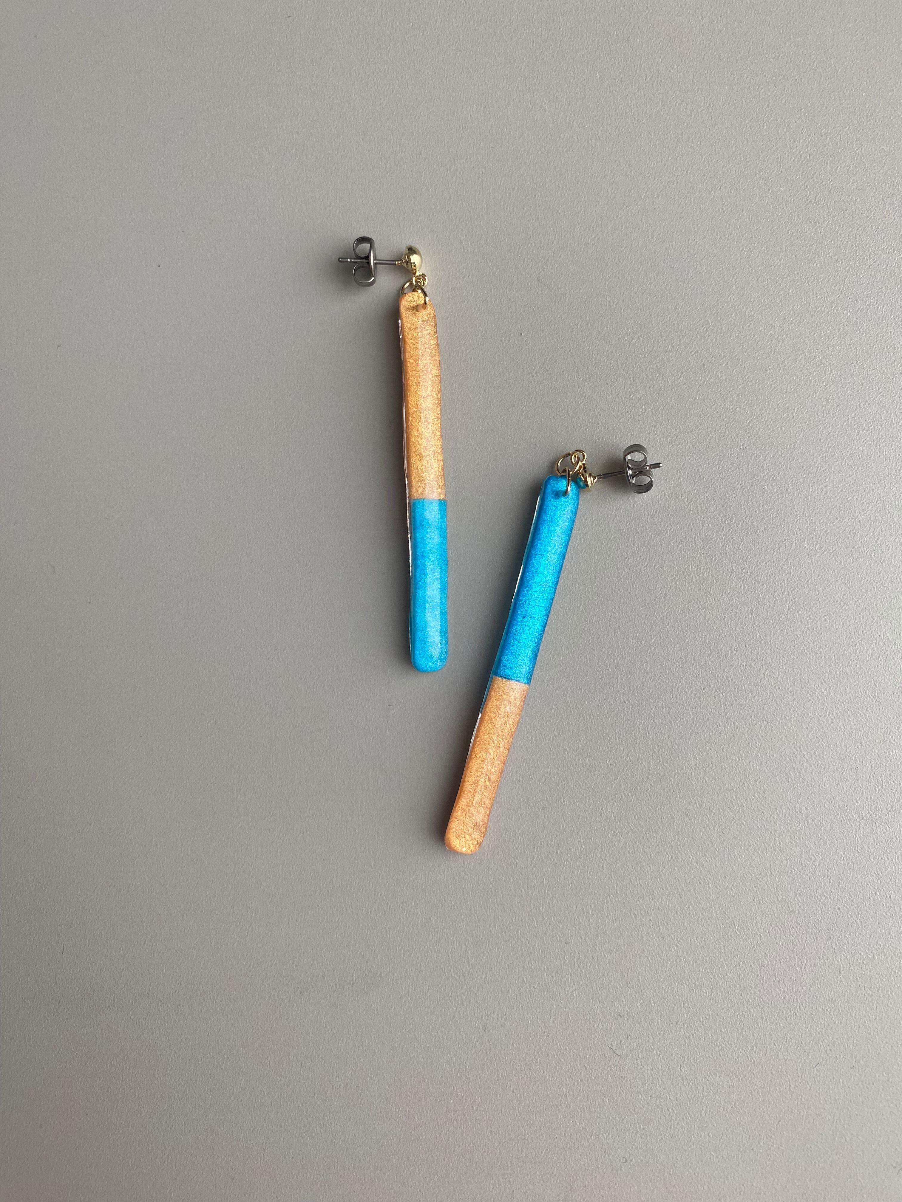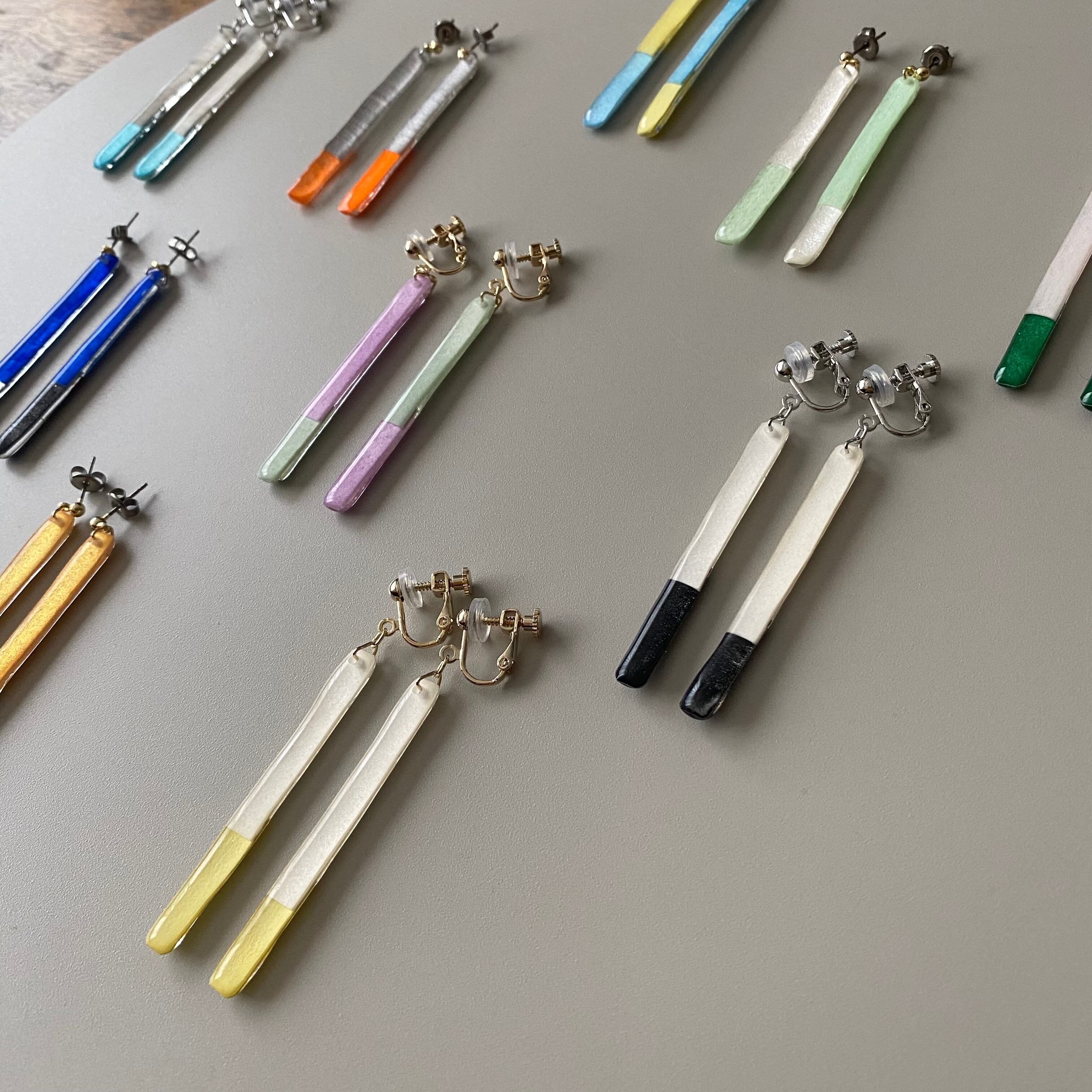 自ら彩色した紙を、不規則なツートンにコラージュしたピアス/イヤリングです。