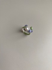 合わせたガラス、ビーズ、パールなどが、軌道をすすむ惑星のように見えたので〈planetイヤーカフ〉と名付けました。