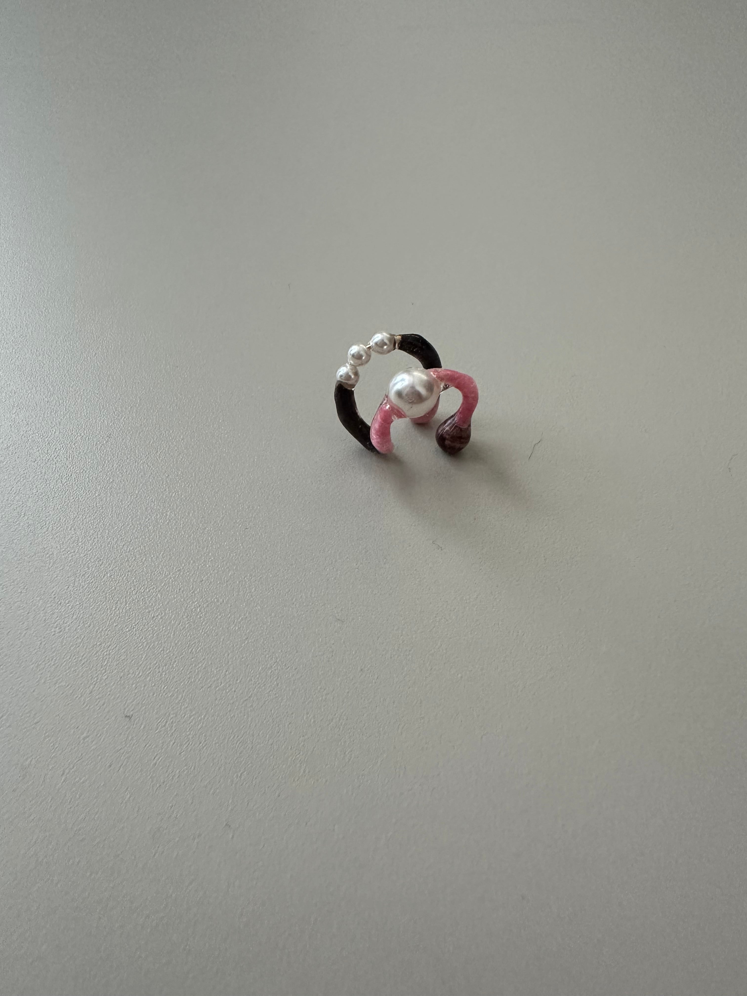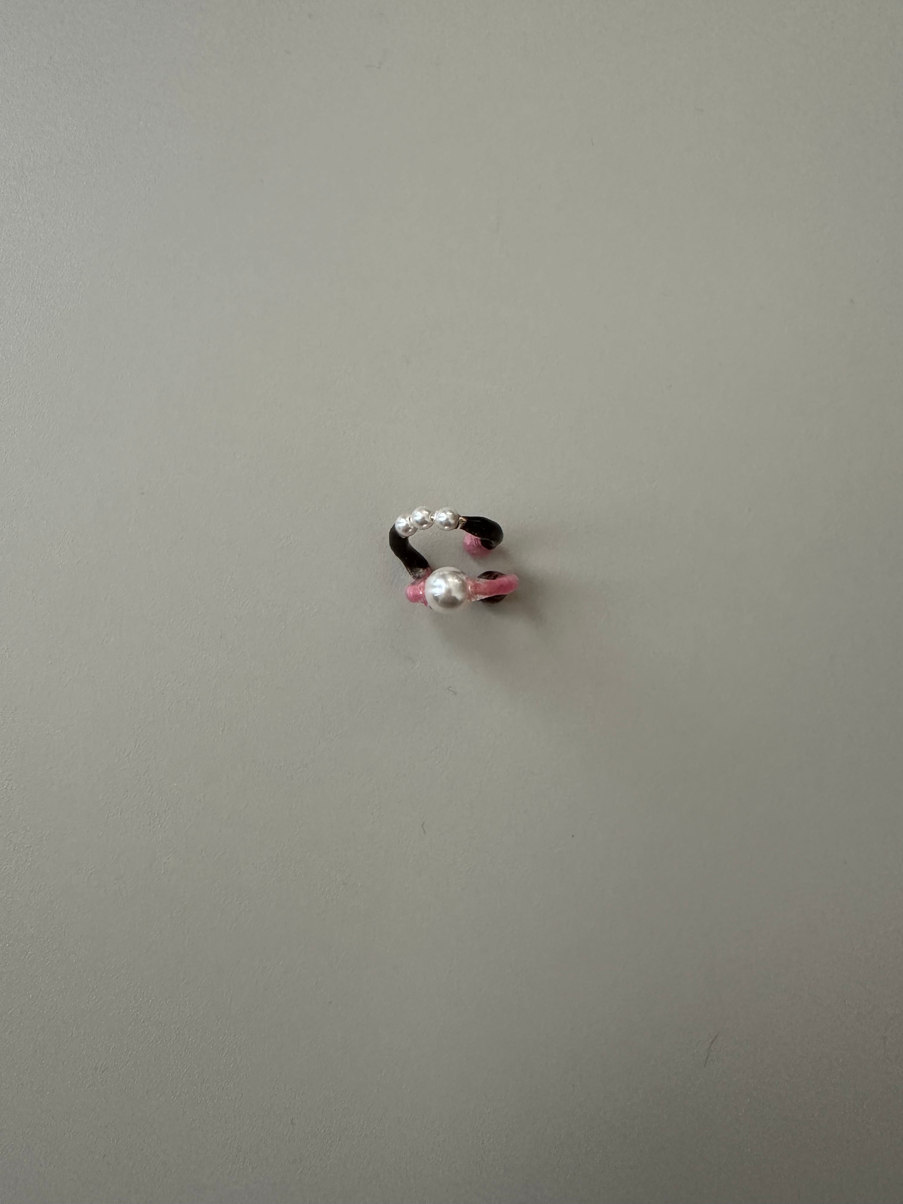 合わせたガラス、ビーズ、パールなどが、軌道をすすむ惑星のように見えたので〈planetイヤーカフ〉と名付けました。