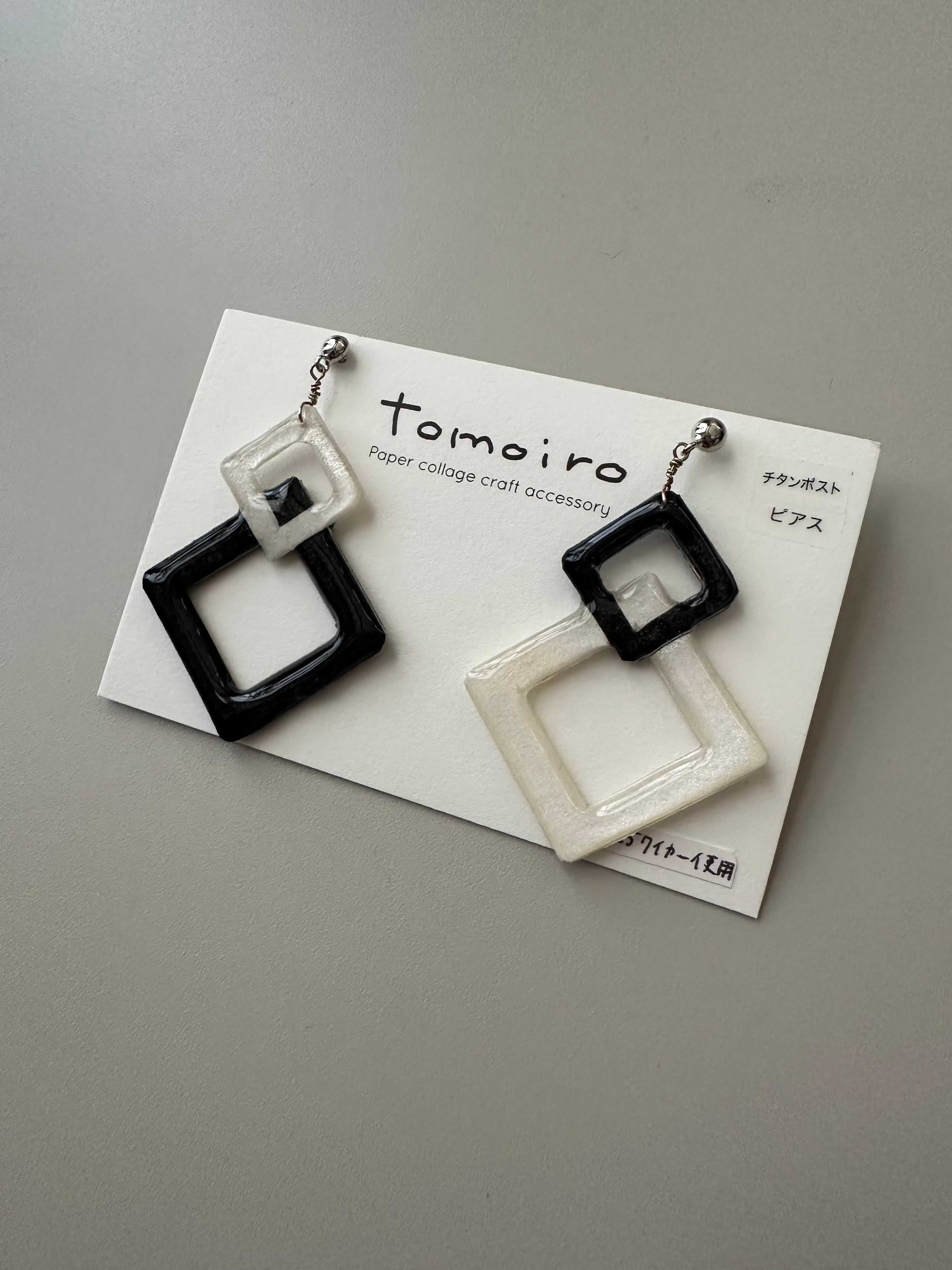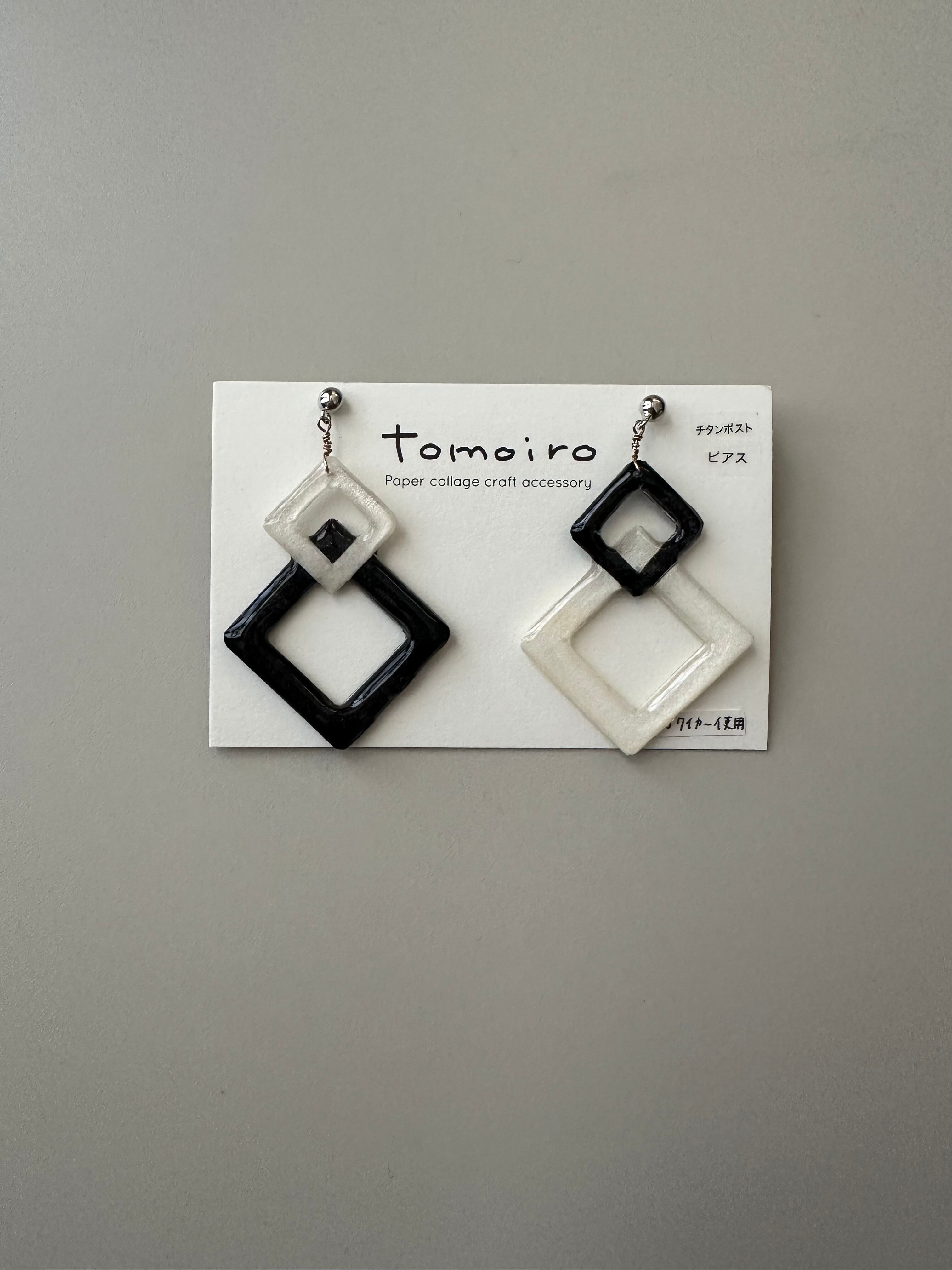 自ら彩色した紙を、大小の菱形にくり抜いて重ねました。アップヘア、ショートヘアなどお耳元がスッキリとしたスタイルにおすすめ。