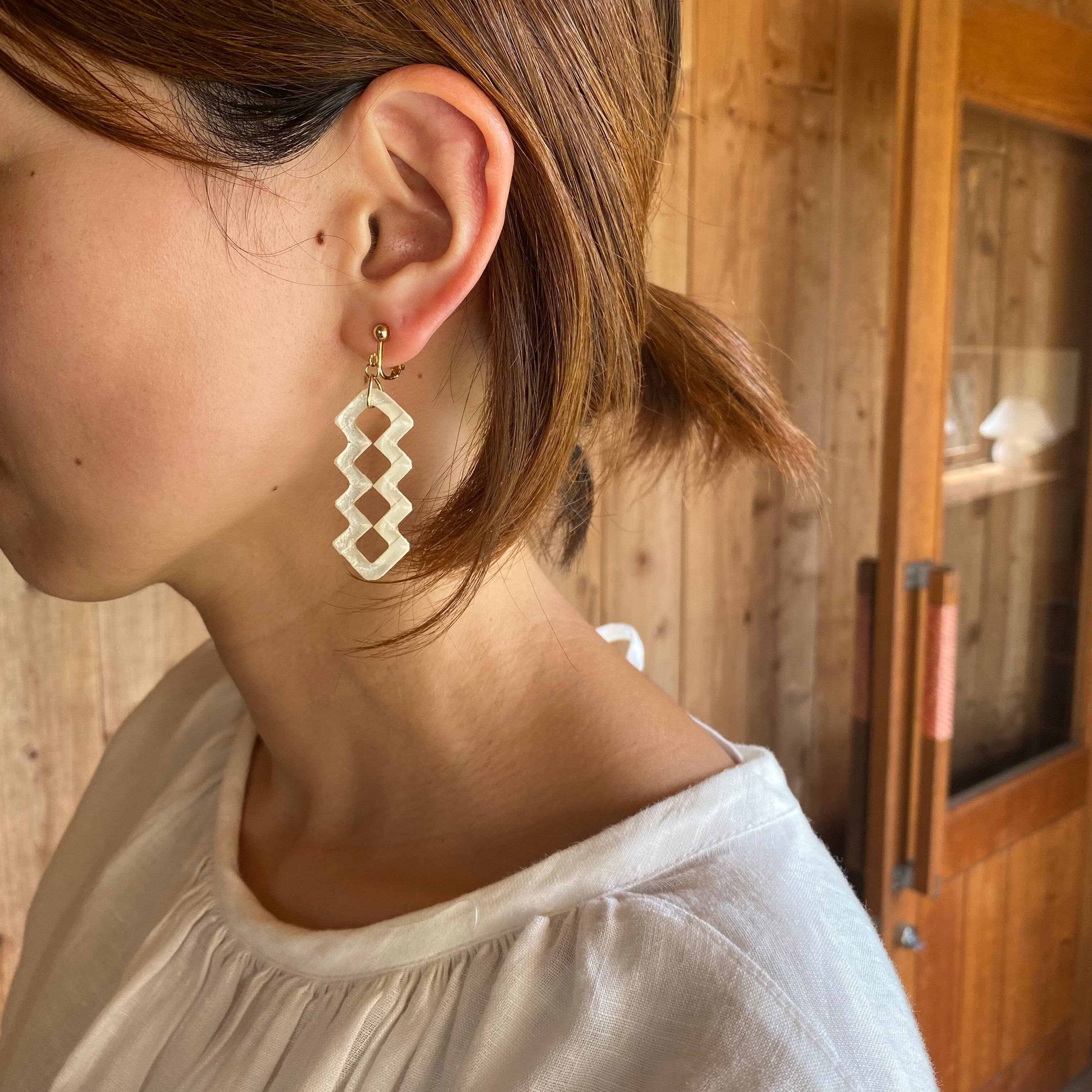イヤリングは真鍮ネジバネ(シリコンカバー付)、カラーはシルバー
