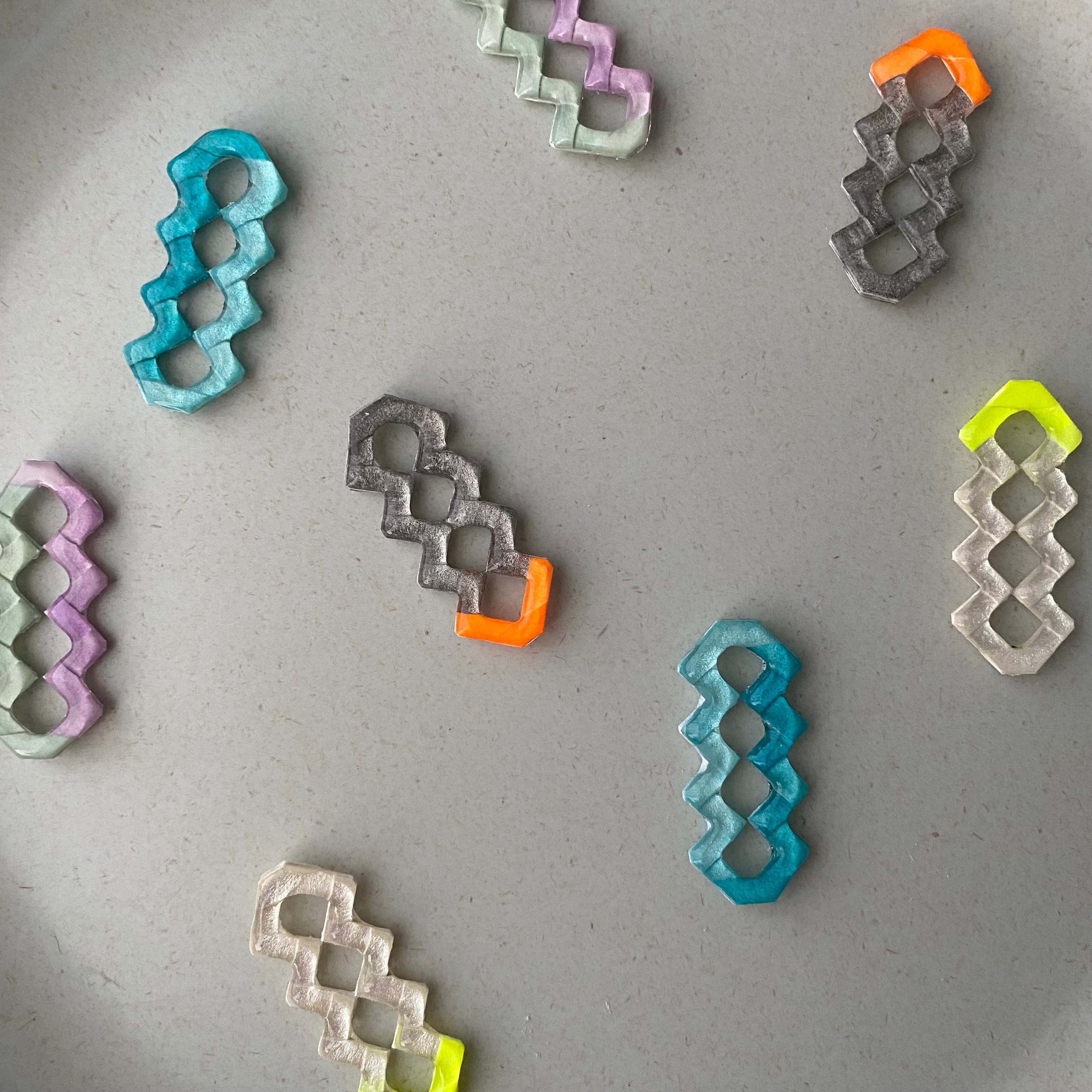 ・モチーフは上質紙に絵の具、樹脂コーティング